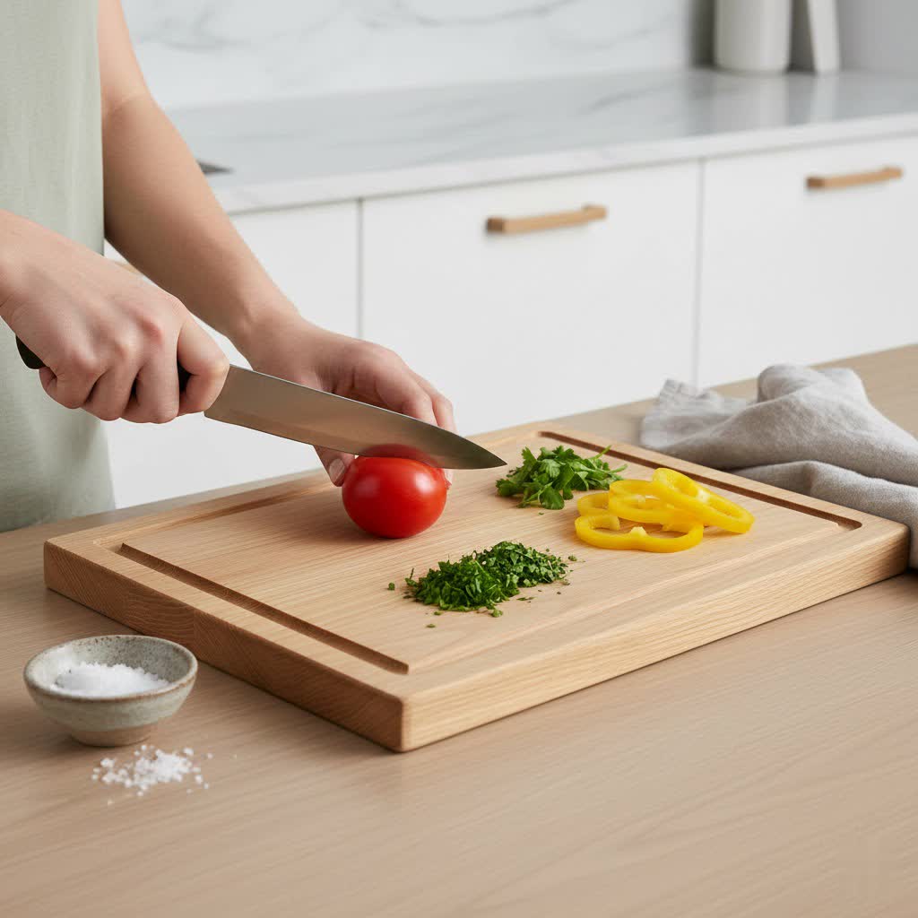 Beyond basic care, a few expert tips can further extend the life and performance of your Hardwood Chef board. It’s wise to designate separate cutting boards for raw meats/poultry and for produce to prevent cross-contamination. Always place a damp cloth or non-slip mat underneath your board to keep it secure during chopping, enhancing safety and efficiency. While acacia is durable, avoid excessively forceful chopping or cleaving, which can leave deep marks or even damage the wood. Even with the best care, wooden cutting boards have a lifespan; consider replacing your board every 1-2 years if it shows deep gouges, becomes difficult to clean, or exhibits signs of bacterial buildup.